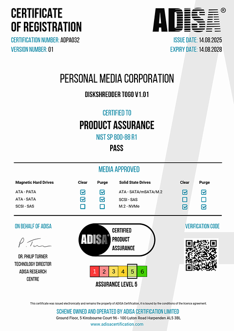 Before purchasing a license key of DiskShredder ToGo, please be sure to use the Operation check program on the computer to be erased. You can download the program here.